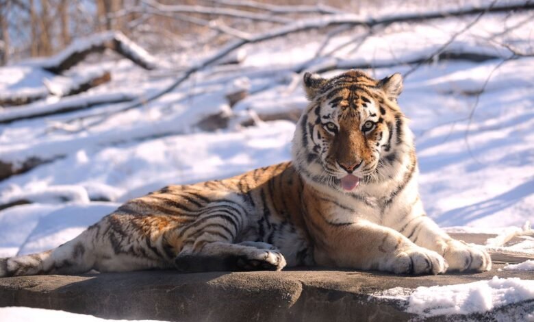 A tiger enjoys the winter weather at the Bronx Zoo in New York City in 2009.