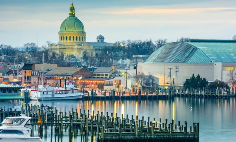 Annapolis, the capital of Maryland, is pictured with the United States Naval Academy Chapel. Maryland lawmakers are folding on legislation to authorize iGaming, but a measure to ban sweepstakes casinos remains. (Image: Shutterstock)