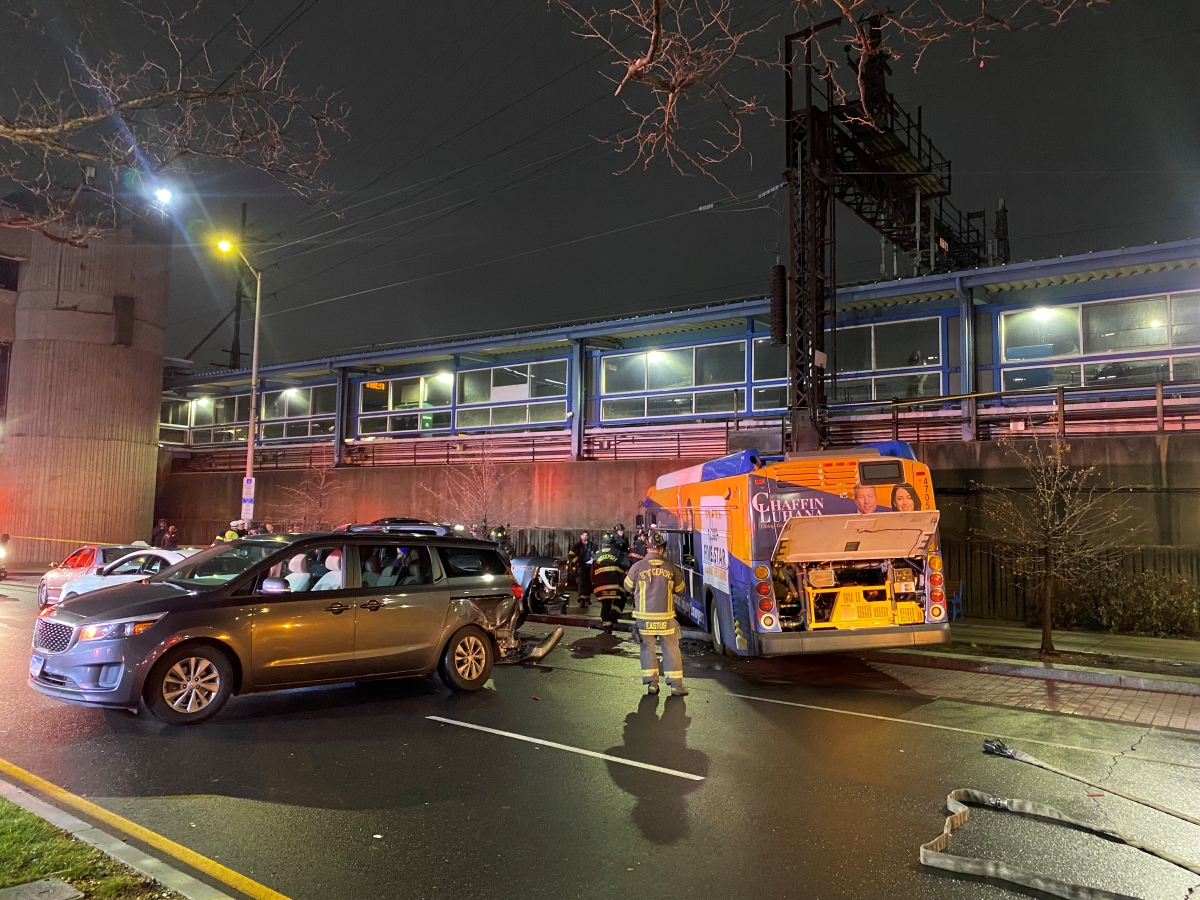 The collision took place at around 7:40 p.m. on the 500 block of Water Street, where officials located a Greater Bridgeport Transit Authority (GBTA) bus that struck at least six other vehicles and a wall of the Bridgeport train station.