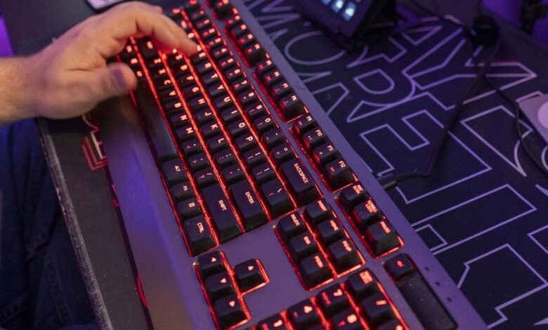 A backlit keyboard is part of the gear online video game streamer Jordan Woodruff uses in his Gilbert home.Jordan Woodruff