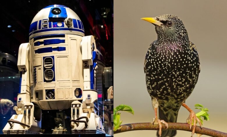 Some birds such as starlings (right) are better at mimicking R2-D2 (left) than others.